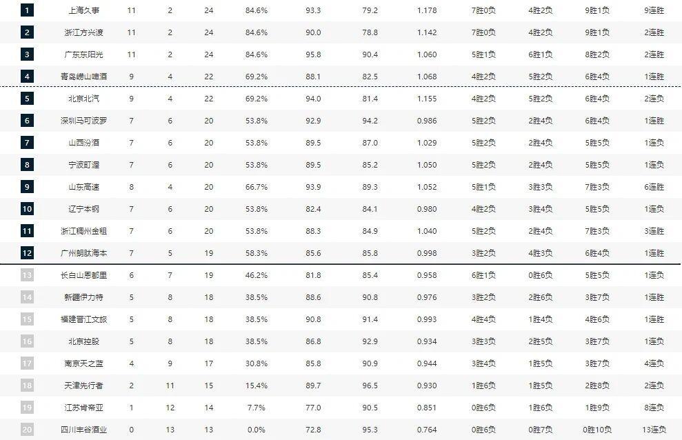 广州男篮目前以七胜五负的战绩排在第十二位,是季后赛区域的守门员。和山东男篮一样,广州男篮也是少打了一场比赛,不过从球队的实力和表现来看的话,排名基本上也就是这样了,会在季后赛门槛上浮动。剩下的八支球队中,实力就比较一般了,值得一提的只有新疆男篮和北控男篮。这两支球队的纸面实力其实并不错,但成绩却都有些糟糕。新疆男篮方面已经换帅,新帅格兰上任后球队的表现比较明显,很可能会触底反弹。至于北控男篮,不仅攻防两端都有问题,而且士气也非常低迷,但对于这种情况,主教练张庆鹏却束手无策,估计他距离下课已经不远了!